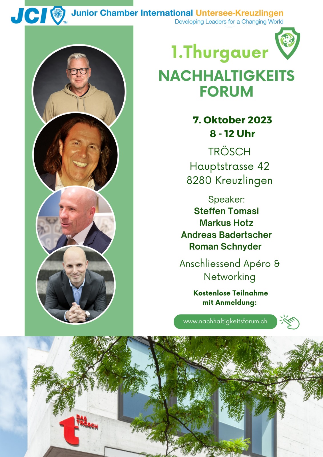 Am 7. Oktober 2023 findet das 1. Thurgauer Nachhaltigkeitsforum statt, welches von der Junior Chamber International Untersee-Kreuzlingen (JCI) organisiert wird. Am Forum werden renommierte Speaker aus der Region auftreten, die sich mit den Entwicklungszielen der Vereinten Nationen (Sustainable Development Goals - SDG) beschäftigen.